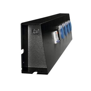 A estrutura composta por chapas de aço carbono conformadas. Tomadas em termoplástico autoextinguível isolante. Cabo revestido em policloreto de vinila (PVC). Pintura eletrostática na cor preta. Sistema de aterramento. Quatro Tomadas 20 A. Disjuntor 20A Dispositivo de proteção contrafuga de corrente 30 mA (DR). Possui capacidade de interligação. Acompanha parafusos para fixação. A potência máxima suportada é de 4.400W @ 220V - 2.540W @ 127V.