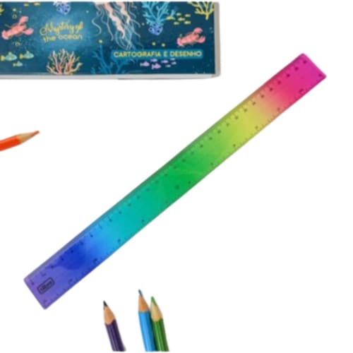 Régua em Poliestireno 30cm Degradê auxilia no traçado, conferência de documentos e na realização de desenhos.