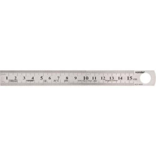 Fabricada em aço inox, proporcionando maior resistência à oxidação/corrosão Graduação da escala: mm Comprimento da escala de aço: 150 mm Material da escala: aço inoxidável Largura da escala: 17,0 mm Espessura da escala: 0,7 mm Tipo de marcação da escala: baixo relevo 1 escala Ean: 7893946015558