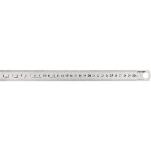 Regua / escala de aco 300mm vonder Conteúdo da embalagem: 1 escala Indicada para medições e traçagens em geral Fabricada em aço inox, proporcionando maior resistência à oxidação/corrosão Graduação da escala: mmComprimento da escala de aço: 300 mmMaterial da escala: aço inoxidávelLargura da escala: 25,0 mmEspessura da escala: 0,7 mmTipo de marcação da escala: baixo relevo