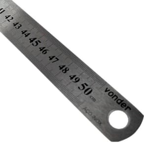 Regua escala de aco 500mm vonder Características: Indicada para medições e traçagens em geral Fabricada em aço inox, proporcionando maior resistência à oxidação/corrosão informações técnicas: Marca Vonder Modelo 3561210000 Graduação da escala Comprimento da escala de aço 500 mm Material da escala Aço inoxidável Largura da escala 25,0 mm Espessura da escala 1,0 mm Tipo de marcação da escala Baixo relevo