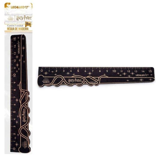 Com a régua de madeira harry potter você poderá traçar quantas linhas retas quiser, e quem sabe ainda fazer alguns feitiços... a régua de madeira decorada harry potter leo & leo é produzida em madeira e vem com uma unidade em uma embalagem oppbag com um blister card, e tem 15 cm de comprimento.