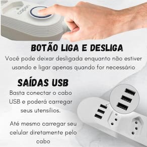 4 tomadas e 3 entradas usb para transformar a maneira como você lida com a energia em sua casa ou escritório. Mantenha-se conectado, seguro e carregado com eficiência.