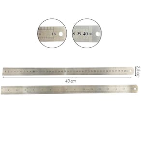 Essa régua de metal é ideal para trabalhos de escolas, desenhos, costuras, cortes entre outras. Super resistente feia em aço inoxidável, medidas de 30, 40, 50 e 60 cm, uso doméstico ou profissional. Este produto é super leve e fácil de carregar para qualquer lugar, ideal para realizar cortes em papeis, medidas para maquetes e muito mais, facilita sua vida na hora de medir qualquer coisa, sua gravação é de baixo relevo trazendo mais durabilidade, ou seja, demora muito mais para as marcações se apagarem. Um ótimo item para ter em sua mesa de escritório ou ate mesmo carregar na mochila.
