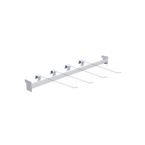 Componentes do kit: - 1 régua 73cm para ponta de gôndola - sa gôndolas - 4 ganchos simples - sa gôndolas