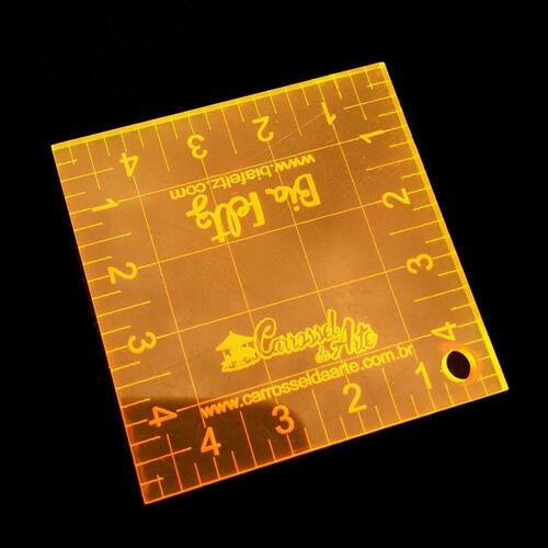 Régua para Patchwork 5x15cm Marcações em Centímetros Tamanho de 5 x 5 centímetros De 2,5 em 2,5 mm Régua criada para uso geral no artesanato. Trabalhos: colchas, centros de mesa, bolsas e jogos americanos e tudo mais que a sua imaginação permitir Ideal para Patchwork, Scrapbook. Marca: Carrossel da Arte Material: Acrílico Virgem Cor: Laranja fluorescente transparente Espessura: 3 mm Régua gravados a laser, que nunca vão ser apagadas.