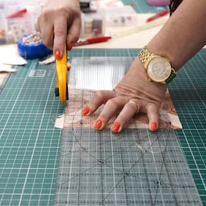 Régua para Patchwork Quilt Olfa QR-6x24 15x60cm Régua para Patchwork Quilt Olfa QR-6x24, possui possui uma superfície de acrílico fosco, com números pretos, para maior clareza em materiais de cores claras e escuras, além disso é antiderrapante garantindo maior estabilidade e segurança ao cortar. Ideal para destros e canhotos. Marca: OlfaModelo: Régua para Patchwork QuiltReferência: QR-6x24TransparenteEspessura: 3mm Ângulos marcados: 15, 30, 45, 60 e 90Dimensões: 15 x 60cm Largura x Comprimento
