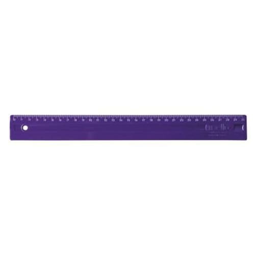 Produto certificado no âmbito brasileiro de qualidade, conforme Portaria Inmetro Nº 333/2012:Segurança, Compulsório, Registro 001540/2013, IQB0006, INMETRORégua plástica 30cm - roxa - 3112.R - DelloDescrição - Medidas: 310 x 34 x 3 mm. - Régua de 30cm injetada em poliestireno, super resistente espessura de 3,4 mm . - Permite apoio central para os dedos, mais firmeza de manuseio e precisão no traçado. - Ótima para crianças e para guiar leitura de textos.