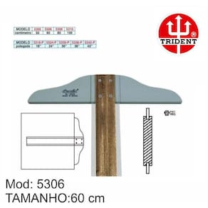 Régua T Trident Mod 5306 Madeira 60 Cm Cabeçote Fixo DesetecFabricada em madeira de lei tratada.A prova de torção e empenamento.Belíssima aparência.Fino acabamento e esquadro perfeito.Com Bordas de acrílico e cabeçote fixo.