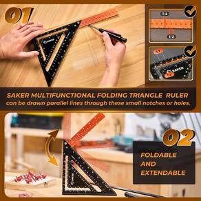 Quadrado dobrável em T de 12 polegadas -?Design dobrável inovador?O quadrado dobrável Saker possui um design dobrável exclusivo que não apenas garante fácil armazenamento e portabilidade, mas também aprimora sua funcionalidade. Quando desdobrado, ele fornece uma faixa de marcação maior, permitindo que você realize uma variedade de projetos com precisão. Esse recurso conveniente o torna perfeito para tarefas em movimento, garantindo que você sempre tenha uma ferramenta confiável de medição e marcação na ponta dos dedos. -?Ferramenta de medição multifuncional versátil?A régua triangular multifuncional Saker é sua solução ideal para uma variedade de projetos, combinando várias funções em uma ferramenta essencial. Além de simplesmente desenhar linhas retas, ele permite criar linhas angulares precisas, tornando-o perfeito para tarefas de construção e design. Além disso, seu design facilita a marcação fácil de linhas equidistantes, garantindo simetria e precisão nos layouts geométricos. É o quadrado tudo-em-um. -?Design compacto e portátil?Medindo 12 polegadas, o quadrado Saker apresenta um design dobrável exclusivo que permite que ele se encaixe facilmente em sua caixa de ferramentas. Sua construção leve facilita o transporte até os locais de trabalho ou a movimentação pelo espaço de trabalho, garantindo que você sempre tenha a ferramenta certa à mão sem ocupar espaço desnecessário. -?Mais comprido que o pequeno, menor que o longo?O Saker Folding Square é uma ferramenta de medição versátil que mede 12 polegadas de comprimento, tornando-a maior e mais prática do que uma régua padrão de 7 polegadas. Também mais compacto do que uma régua de 12 polegadas, seu design dobrável inovador é fácil de transportar, permitindo que você o leve convenientemente a qualquer local de trabalho. Apesar de seu tamanho compacto, essa régua está equipada com todos os recursos essenciais necessários para medições precisas, tornando-a a companheira perfeita para trabalhos de escritório e de campo. -?Durável e preciso?Feito com materiais duráveis e de alta qualidade, o quadrado Saker de 12 polegadas foi feito para durar. Sua construção robusta resiste à flexão e quebra, mesmo sob uso intenso. As marcações gravadas com precisão fornecem medições claras e fáceis de ler, garantindo que você sempre obtenha cortes e layouts precisos, reduzindo o risco de erros dispendiosos. -?Escala claramente visível?A régua Saker tem uma escala claramente visível e não se desgasta facilmente. Com marcações claras e fáceis de ler e uma alça confortável, a régua triangular Saker aprimora suas tarefas de medição, garantindo precisão e eficiência para profissionais e entusiastas de bricolage. -?Experiência fácil de usar?A régua triangular Saker apresenta marcações claras e fáceis de ler e uma alça ergonômica, aumentando o conforto e o controle durante o uso. Seja marcando, medindo ou cortando, essa ferramenta simplifica seu fluxo de trabalho.