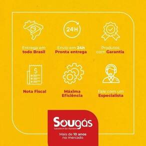 Regulador de gás baixa pressão de 12kgs de vazão Regulador -pressão - 12 kg/h Tipo: estágio único Diâmetro injetor: 3,5mm Diâmetro do corpo: 118mm Pressão de entrada: 5,0 kgf/cm Pressão de saída: 2,8 kpa Vazão glp: 12 kg/h Faixa de regulagem: 2,2 kpa a 4,7 kpa Conexão entrada: 1/2 npt interna Conexão saída: 1/2 npt interna Comprimento: 131,50mm Peso: 0,615 kg Temperatura de trabalho: -10c a +70c Nossos produtos sempre acompanham , compra 100% segura. Em caso de dúvidas não hesite em perguntar, responderemos no menor espaço de tempo possível. Sougas especialista em gás e aquecedores distribuidora e assistência técnica autorizada das principais marcas do segmento há mais de 10 anos; loja física em são josé dos pinhais - pr. Venda de aquecedores, pressurizadores de agua, peças de reposição e conexões em geral. Horário de atendimento: segunda a sexta-feira das 8:00h às 18:30hrs e sábado das 08:00hrs às 13:00hrs Marca: Não Informado