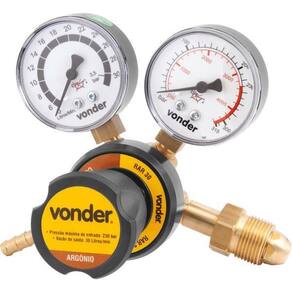 Regulador Argônio Rar30 - Vonder Conteúdo da embalagem1 Regulador . Acompanha: 1 conjunto de porca e niple para conexão em mangueiras. Aplicações e dicas de usoIndicado para uso com argônio ou mistura argônio Ar + dióxido de carbono CO2 em processos de solda MIG/MAG e TIG. Linha média.Destaques e diferenciaisPossui corpo em latão forjado e capa em alumínio injetado com pintura epóxi, proporcionando maior resistência. Atende as exigências das normas EN-2503 / ABNT 14250 / ABNT 245-1 e CGA E1-23. DETALHES TÉCNICOS Tipo de gás do regulador para gases de solda Argônio Pressão máxima de entrada: 230 bar Pressão máxima de saída: 3,5 bar Escala do manômetro de entrada do regulador para gases de solda: 0 - 315 bar / 0 - 4.500 Lbf/pol Psi Escala do manômetro de saída do regulador para gases de solda: 0 - 3,5 bar / 0 - 30 Litros/min Diâmetro do manômetro do regulador para gases de solda: 63,5 mm