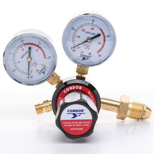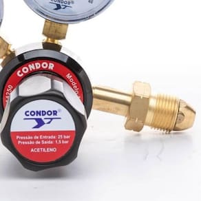 Regulador Acetileno Condor MD 1,5 AC Ideal para aplicações industriais de corte, solda e aquecimento. Especificações: Pressão Max Entrada bar P1: 25 Pressão Máx Saída bar P2: 1,5 Pressão Entrada Crítica bar P3: 4 Manômetro Baixa Pressão bar : 2,5 Manômetro Alta Pressão bar : 4 Vazão Máx m/h Qmax/Qcritica: 30/14 Código do Fabricante: 0405113 Imagem meramente ilustrativa. Ean: 7895678065214