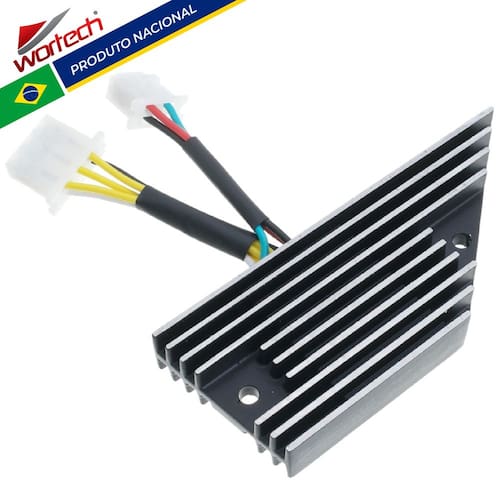 - Tecnologia: Circuito com Transistor (MOSFET) - Melhor Eficiência que os circuitos (Shunt fechado) - Temperatura de trabalho: de 40°C a 60°C - Potência Máxima: 480W - Tensão de saída: 13,6 a 14,8V - Amperagem: 50A - Conector: Em Nylon de alta qualidade - Terminais: metálicos estanhados de alta condutividade - Dissipação: Carcaça em alumínio com alto poder de refrigeração - Dimensões da carcaça (Altura x Largura x Comprimento): 23 x 65 x 167 mm - Distância entre os furos: 101 mm - Espessura da parte de fixação: 09 mm