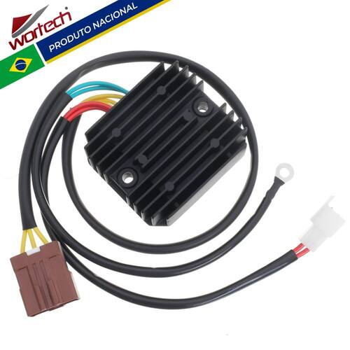 - Espessura da parte de fixação: 18 mmConexões:- 01 > Conector 3 vias com cabos amarelos de 260 mm- 01 > Conector 2 vias com 2 cabos vermelhos de 260 mm- 01 > terminal olhal com 2 cabos verdes de 260 mmItens Inclusos:- 01 > Regulador Retificador- 01 > Certificado de garantiaGarantia total de 12 meses