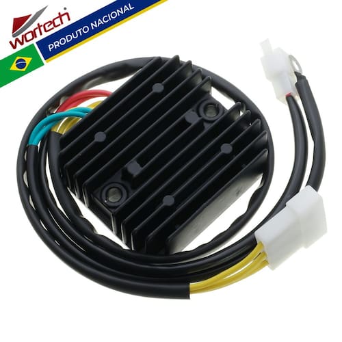Marca: Wortech (Indústria Brasileira)Código: W-0313143/195 Características do produto: - Tecnologia: Circuito com Transistor (MOSFET)- Melhor Eficiência que os circuitos (Shunt fechado)- Temperatura de trabalho: de 40°C a 60°C- Potência Máxima: 480W- Tensão de saída: 13,6 a 14,8V- Amperagem: 50A- Conector: Em Nylon de alta qualidade- Terminais: metálicos estanhados de alta condutividade - Dissipação: Carcaça em alumínio com alto poder de refrigeração- Dimensões da carcaça (Altura x Largura x Comprimento): 28 x 90 x 80 mm- Distância entre os furos: 68 mm - Espessura da parte de fixação: 18 mmConexões:- 01 > Conector 3 vias com cabos amarelos de 540 mm- 01 > Conector 2 vias com 2 cabos vermelhos de 300 mm- 01 > terminal olhal com 2 cabos verdes de 500 mm Itens Inclusos:- 01 > Regulador Retificador- 01 > Certificado de garantiaGarantia total de 12 meses Marca: Wortech