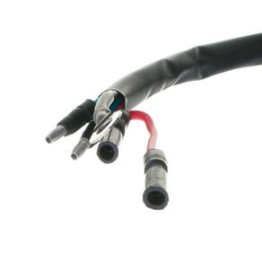 - 01 > Terminal olhal com cabo preto de 340mm - 01 > Cabo Vermelho de 340mm com terminal fêmea e acabamento de borracha - 02 > Cabo verde de 300 mm com terminais macho e acabamento de borracha