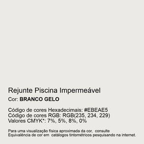 Características Rejunte Piscina Impermeável é destinado ao rejuntamento e impermeabilização de pastilhas, revestimentos cerâmicos, porcelanatos de médios e grandes formatos, e pedras naturais. Possui alta aderência e resistência, produto inodoro e não tóxico. Pode ser aplicada em ambientes internos e externos. Atende aos requisitos das normas ABNT NBR 14992.