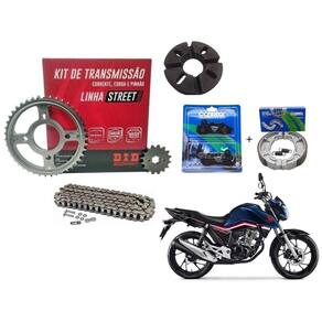 Itens Inclusos: 01 Jogo Buchas Coroa - 01 Corrente Com Retentor - 01 Coroa - 01 Pinhão - 01 Lona Traseira - 01 Jogo Pastilhas Compativel Com: Cg Titan 160 Ex Esd Para Os Anos: 2015 Até 2017 Marca Fabricante Coxim Coroa: Dvsc Marca Fabricante Kit Relação: Did Marca Fabricante Freios Cobreq Codigo Fabricante Cobreq: N-1836 - 0302 CP Medidas: Coroa 44 Dentes - Pinhão 15 Dentes - Corrente Retentor 428x118 Disponibilidade Imediata