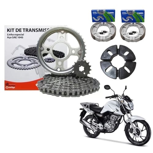 Itens Inclusos: 01 Corrente Sem Retentor - 01 Coroa - 01 Pinhão - 02 Lonas - 01 Jogo Buchas Compativel Com: Cg Start 160 Para Os Anos : 2015 - 2016 - 2017 - 2018 - 2019 - 2020 - 2021 - 2022 - 2023 Marca Fabricante Kit Relação: Cofap Marca Fabricante Lona Freio: Cobreq Marca Fabricante Buchas Coxim Coroa: Dvsc Codigo Fabricante Cobreq: 0302 CP Medidas: Coroa 44 Dentes - Pinhão 15 Dentes - Corrente Sem Retentor 428x118 Disponibilidade Imediata