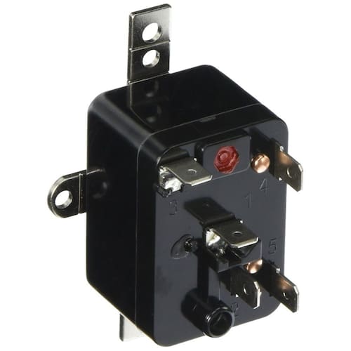 Relé con ventilador encerrado Emerson 90-293Q - Relé de ventilador con un solo polo y doble tiro - Color rojo ladrillo | no inflamable | proporciona un sello acústico a prueba de fuego - Fabricado en Estados Unidos - Número de modelo: 90-293Q