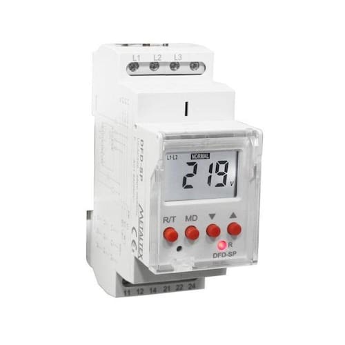 Rele Monit Tensao Dig Trif. Fase/Fase 220/460Vca 2 Rev Trilho Din Relé monitor de tensão trifásica com display digital. Monitora: Sub e sobretensão; Falta e sequência de fase; Assimetria de fases. Todas as funções são configuráveis através dos botões frontais. Saída com 2 contatos reversíveis de capacidade 8A-250VCA. Montagem em trilho DIN.Modelo DFD-SP - 3 fases sem neutro - tensões de 220 a 460V configurável .