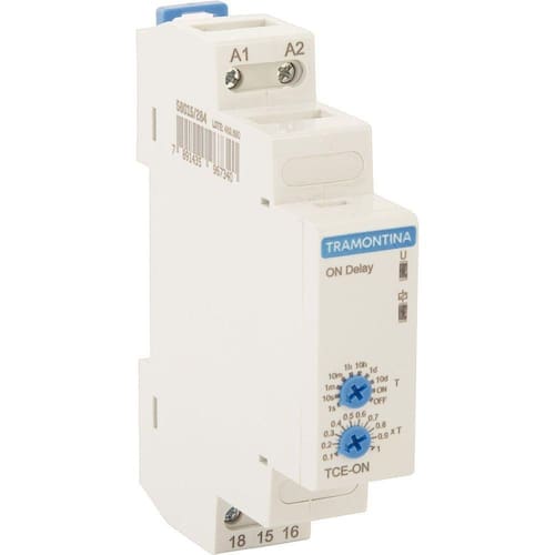 Relé Temporizador Tramontina On Delay 24-240 V 0,1s A 10d Ac/dc 8 A Ac-1 Ou 2 A Ac-15 Tramontina Relé Temporizador Tramontina ON Delay 24-240 V 0,1s a 10d AC/DC 8 A AC-1 ou 2 A AC-15 Tramontina - Para garantir o acionamento dos seus equipamentos de forma correta, conte com o relé temporizador Tramontina ON Delay 24-240 V 0,1s a 10d AC/DC 8 A AC-1 ou 2 A AC-15. Desenvolvido para atender estruturas comerciais, residenciais e industriais, ele pode ser utilizado para controle de bombas dágua, iluminação, partida de motores e muitas outras aplicações. Ele pode ser instalado em quadros de comando e painéis com tensões entre 24 e 240V, em corrente alternada ou contínua. Você pode ajustar seu tempo de acionamento entre 0,1 segundos e 10 suportando até 100 mil ciclos de acionamento. Escolha Tramontina e garanta alta qualidade para seus projetos! Características Gerais do Produto: Garantia: - 90 dias de garantia legal para defeitos de fabricação