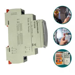 Rele De Tempo 5A Temporizador Estrela Triângulo 0 A 30s 220v Decorlux O relé de tempo é uma unidade de controle automatizada que pode ser combinada com vários outros equipamentos elétricos para realizar o controle automático do circuito operacional. Depois que um tempo predefinido termina, a saída de contato é fechada ou aberta, para que os aparelhos elétricos do terminal possam funcionar automaticamente ou pare. Especificação Técnica: Marca: Decorlux Modelo: RT2230 Tensão: 220Vac Corrente: 5A Função: Temporizador Tempo de Ajuste: 3s-30s Contatos de saída: 1NAF Freqência nominal: 50/60Hz Grau de proteção: IP20 Vida Mecânica: 10x10 operações Vida Elétrica: 10 operações Temperatura ambiente: -540ºC Altitude de instalação: