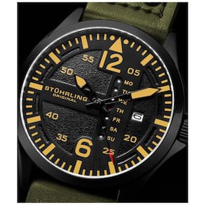 O Relgio Aeronaut 3916 Aviador uma obra-prima da relojoaria, com um design sofisticado e elegante que atende s necessidades do aeronauta moderno. Com um movimento de quartzo japons de alta preciso, este relgio indica o dia da semana e do ms com extrema preciso. A pulseira de couro de crocodilo em relevo de 22 mm confortvel e durvel, enquanto a caixa de ao inoxidvel escovado de 41 mm resistente e imponente. Com um tamanho de 43 mm, este relgio resistente gua at 10 ATM, 100 metros e 330 ps, tornando-o ideal para mergulhadores e aventureiros. O mostrador preto com marcadores de ndice aventureiros e um tringulo guia extra grande mantm sua orientao reta, enquanto o fundo de caixa rosqueado em ao inoxidvel garante a segurana do movimento interno. Este relgio combina o estilo clssico do aviador com a sensibilidade moderna da Stuhrling, tornando-o uma escolha ousada e elegante para qualquer aeronauta. Dimenses da embalagem: 10,67 cm x 8,64 cm x 7,62 cm Fabricante: Sthrling Nmero do modelo: 3916.3 Nmero da pea: 3916.3 Peso do item: 454 gramas