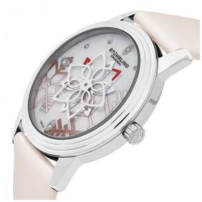 Este relgio feminino suo apresenta uma elegante cor prata, com um mostrador branco e rosa. A pulseira feita de couro genuno revestido de cetim bege, garantindo conforto e durabilidade. Alm disso, o design sofisticado deste relgio perfeito para complementar qualquer look.