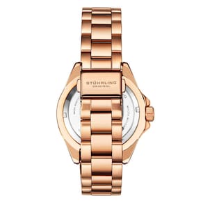Relgio StarSea 3977 39mm com mostrador azul e pulseira em ao inoxidvel rosa com fivela de implantao dourada em camadas - Stuhrling.