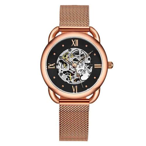 O Relgio Stuhrling 3990M Automtico uma bela pea de relojoaria com um mostrador preto elegante e detalhes em rosa que adicionam um toque de sofisticao. Com sua pulseira em ao inoxidvel e fivela dobrvel em ouro rosa, o relgio confortvel de usar e fcil de ajustar. Com um tamanho de 36 mm, ele perfeito para aqueles que preferem relgios menores. Alm disso, possui uma resistncia gua de 5 ATM, o que significa que pode ser utilizado para atividades aquticas leves, como natao, mas no adequado para mergulho profundo. A moldura fixa polida e a pulseira de malha com 16 mm de largura completam o visual elegante deste relgio clssico. Dimenses da embalagem: 10,67 cm x 8,64 cm x 7,62 cm Fabricante: Sthrling Nmero do modelo: 3990M.5 Nmero da pea: 3990M.5 Peso do item: 454 gramas Marca: Não Informado
