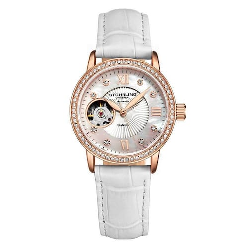 O Relgio Stuhrling Legacy 3952 Automtico 34mm um verdadeiro tesouro para os amantes de relgios. Com um mostrador prateado deslumbrante com detalhes em rosa, este relgio um verdadeiro showstopper. O movimento automtico do corao aberto exposto um verdadeiro deleite para os olhos, enquanto a moldura cravejada de cristal adiciona um toque de brilho e elegncia. A pulseira de couro branco em relevo de crocodilo de 18 mm adiciona um toque de conforto e sofisticao ao relgio. Com uma combinao nica de estilo e funcionalidade, o Legacy 3952 o companheiro perfeito para qualquer ocasio. Dimenses da embalagem: 10,67 cm x 8,64 cm x 7,62 cm Fabricante: Sthrling Nmero do modelo: 3952.2 Nmero da pea: 3952.2 Peso do item: 454 gramas