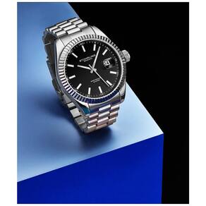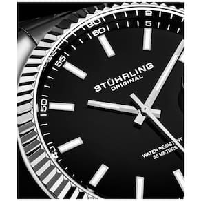 Relgio Stuhrling Lineage 3935 42mm com Mostrador Preto e Pulseira de Ao Inoxidvel Prateado
