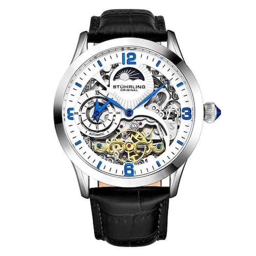 O Relgio Stuhrling Reserva Especial 3921 Automtico um exemplo de preciso mecnica e design sofisticado. Com um tamanho de 44 mm, ele alimentado por uma srie interna de movimentos automticos da ST, que oferece preciso dual time. O indicador AMPM animado e o submostrador do segundo fuso horrio com ponteiros em estilo folha correspondentes so detalhes impressionantes que proporcionam uma experincia nica. Alm disso, o mostrador esqueletizado adiciona uma camada extra de elegncia e sofisticao. A pulseira de couro preto de crocodilo em relevo e a fivela tang prata completam o visual elegante e refinado deste relgio, tornando-o uma adio indispensvel sua coleo de relgios. Dimenses da embalagem: 10,67 cm x 8,64 cm x 7,62 cm Fabricante: Sthrling Nmero do modelo: 3921.2 Nmero da pea: 3921.2 Peso do item: 454 gramas