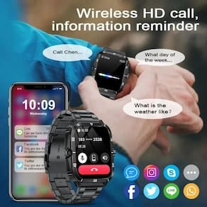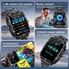 Este relógio também vem equipado com diversos monitores de saúde, como ritmo cardíaco, oxigênio no sangue, sono e pressão arterial, proporcionando um acompanhamento preciso da sua saúde e bem-estar. Sua estrutura em aço garante durabilidade, enquanto o design esportivo complementa qualquer look casual. Totalmente à prova d'água, ele se adapta perfeitamente a todas as situações, desde um treino intenso até um mergulho na piscina.