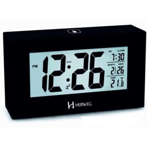 Relógio Despertador Digital 2972 Original Herweg Garantia de 1 ano. Funções: - Iluminação noturna em led ( Podendo ficar acesa o tempo que desejar através de sensor ou clicar para iluminar apenas 5 segundos ) - Sensor de toque no botão de luz - Calendário em Inglês - Função soneca - Termômetro - Alarme