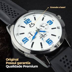 destaque-se com o Relógio Masculino Orizom Spaceman Com um design moderno e elegante, este relógio une funcionalidade e estilo em uma expressão única de sofisticação. Seu fundo branco proporciona uma leitura clara do tempo, enquanto a pulseira de borracha confere conforto e um toque esportivo.