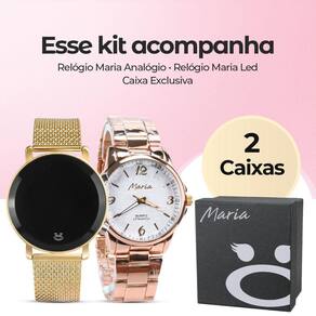 O kit inclui: - 1 Relógio Analógico Feminino Orizom Maria Rosê, banhado em aço inoxidável para um toque delicado e elegante ao pulso. - 1 Relógio Digital Feminino Orizom Maria Dourado com Pulseira em Silicone, oferecendo um estilo moderno e versátil. - 2 Caixas Premium Orizom Maria, para armazenar e exibir os relógios com praticidade e sofisticação.