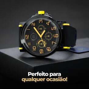 Relogio Aço Inoxidavel Masculino + Oculos Protecao Uv Sol Presente Pulseira Ajustavel Analogico Conjunto Orizom Spaceman - Elegância Urbana! Relógio Analógico Masculino: - Marca: Orizom Spaceman - Design: preto com detalhes amarelos - Material: aço inoxidável - Pulseira: ajustável em silicone para máximo conforto