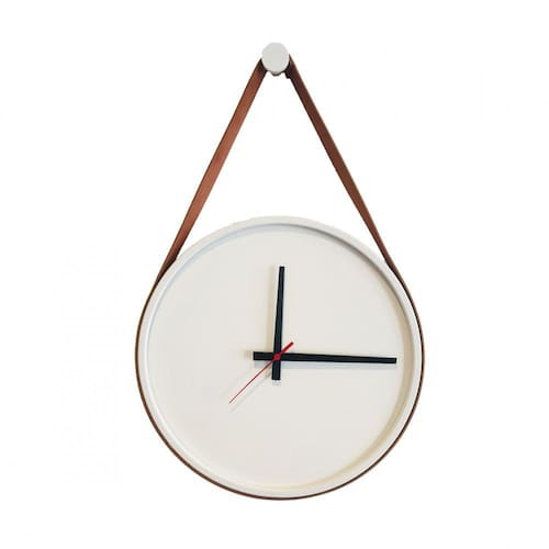 Relógio Adnet Branco Alça Caramelo Mostrador Branco Ponteiro Preto 30 cm