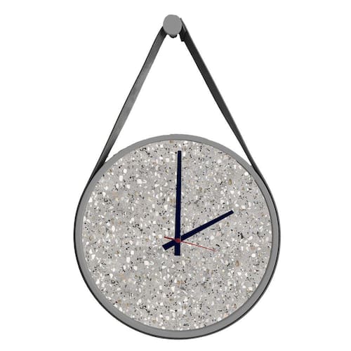Relógio Adnet Cinza Alça Preta Mostrador Terrazzo Ponteiro Preto 30 cm