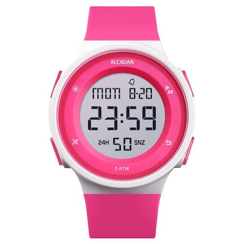 Relógio impermeável ALCADAN Digital Outdoor Sports para homens e mulheres Military Stopwatch Countdown Auto Date Alarm 1445 (rosa vermelha)