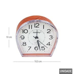 Relógio Analógico de Mesa 10cm Despertador Elegância, praticidade e funcionalidade em um único produto! O Relógio Analógico de Mesa de 10m com Design parecido com madeira é uma peça compacta e sofisticada, ideal para compor a decoração de ambientes modernos, minimalistas ou clássicos. Com um visual diferenciado e discreto.\nEle se destaca pelo seu formato diferenciado e pelo acabamento parecido com madeira, que remete ao estilo natural e acolhedor da madeira. Além do visual decorativo, o relógio conta com função despertador, sendo perfeito para o uso diário em mesas de cabeceira, escritórios, home offices ou salas de estar.\nUtiliza: 1x Pilha AA (Não Inclusa). Informação Adicional Marca : TINGS Tipo de material : Componentes Eletrônicos, Plástico Cores ou Estampa : Marrom Dimensões do Produto : 10 X 10,5 X 4 CM Dimensões da Embalagem : 10,5 X 11 X 4,5 CM Peso Bruto (Gramas) : 0.113 Marca: Não Informado
