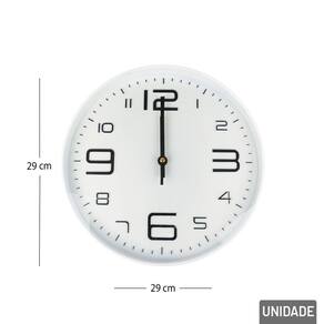 Relógio Analógico de Parede 29cm Redondo Br Decore com pontualidade! O Relógio Analógico de Parede de 29cm Redondo com designs de fundo branco e números grandes em preto, é a escolha perfeita para quem deseja praticidade em ver a Hora, delicado e cheio de charme. Com estampas exclusivas que remetem a uma bela decoração, este Relógio é ideal para presentear ou decorar.\nSeu formato permite fácil instalação em diversos espaços, como quartos, salas, escritórios, consultórios ou cantinhos especiais do lar. O movimento analógico silencioso garante precisão sem ruídos incômodos, enquanto o visor com números bem definidos facilita a leitura das horas.\nUtiliza: 1x Pilha AA (Não Inclusa). Informação Adicional Marca : TINGS Tipo de material : Componentes Eletrônicos, Plástico Cores ou Estampa : Branco, Preto Dimensões do Produto : 29 X 29 X 4 CM Dimensões da Embalagem : 30 X 30 X 4,5 CM Peso Bruto (Gramas) : 0.584 Marca: Não Informado