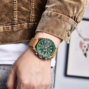 Com um mostrador analógico distinto e marcadores luminosos, este relógio permite uma leitura clara mesmo em condições de pouca luz. Além disso, o cronógrafo integrado oferece uma precisão inigualável, fazendo com que este seja um item indispensável para quem aprecia tecnologia de ponta e estilo pessoal. Este relógio não é apenas um acessório; é uma declaração de classe e elegância.