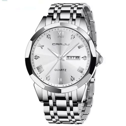 Elegante e durável, este relógio masculino de quartzo possui um design clássico com caixa e pulseira de aço inoxidável. Impermeável, é perfeito para uso diário, combinando estilo e funcionalidade.
