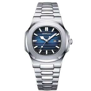 Construção em Aço Inoxidável: Feito com aço inoxidável de alta qualidade, este relógio é resistente à corrosão, proporcionando durabilidade e um acabamento polido.