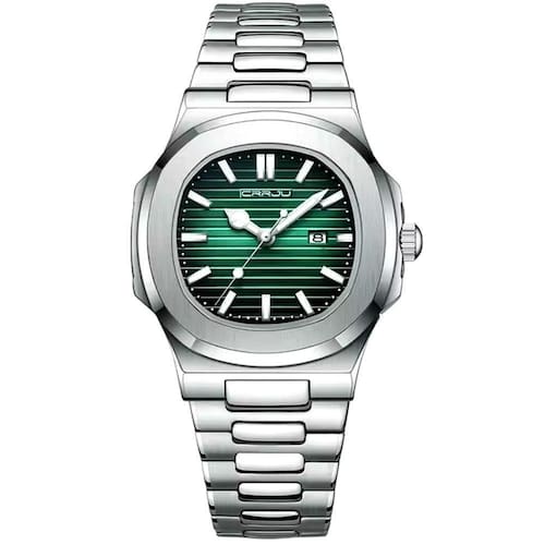 Construção em Aço Inoxidável: Feito com aço inoxidável de alta qualidade, este relógio é resistente à corrosão, proporcionando durabilidade e um acabamento polido.