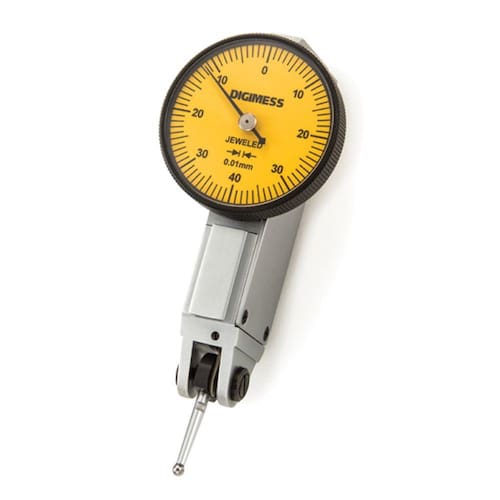 Relógio apalpador de alta precisão Digimess. Fabricados com peças metálicas,resistentes a pequenos impactos. Mecanismo interno montado sobre mancais de rubi. Ponta de contato com esfera de ø 2 mm. Aro de alumínio recartilhado anodizado. Caixa monobloco. Duas hastes para fixação ( tipo rabo de andorinha ) ø 6 mm e ø 8 mm